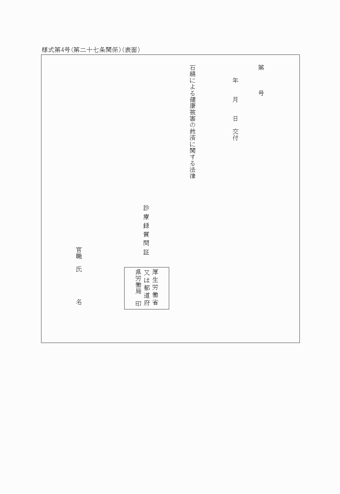 厚生労働省関係石綿による健康被害の救済に関する法律施行規則