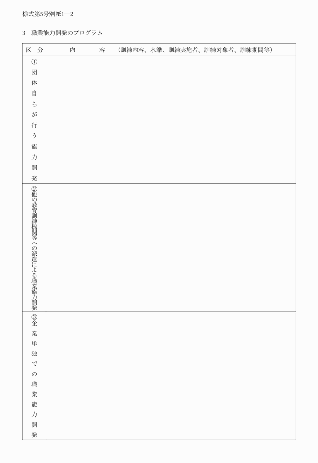 (2) 構成事業主が人材育成実施方針に従って単独又は共同で実施する認定職業訓練に係る計画(以下「人材育成実施計画」という。)の作成を行うこと。