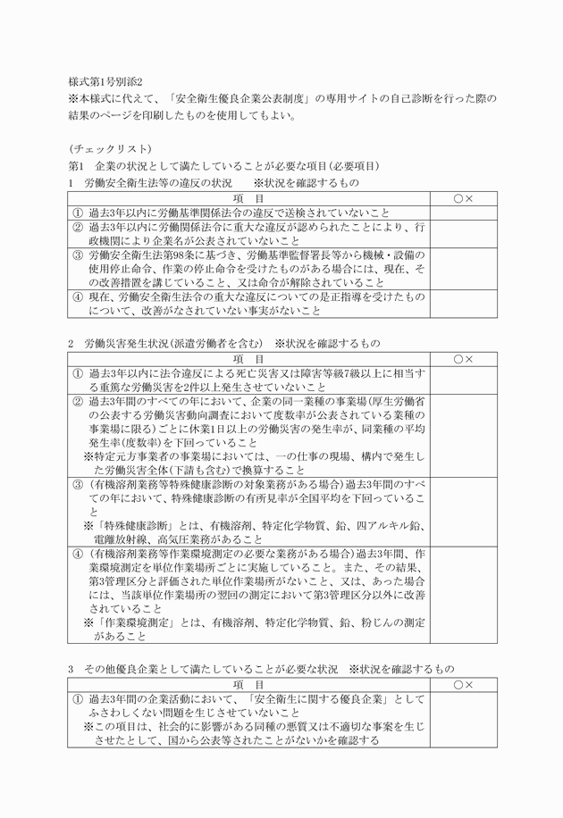 ア 安全衛生優良企業認定申請書(様式第1号)