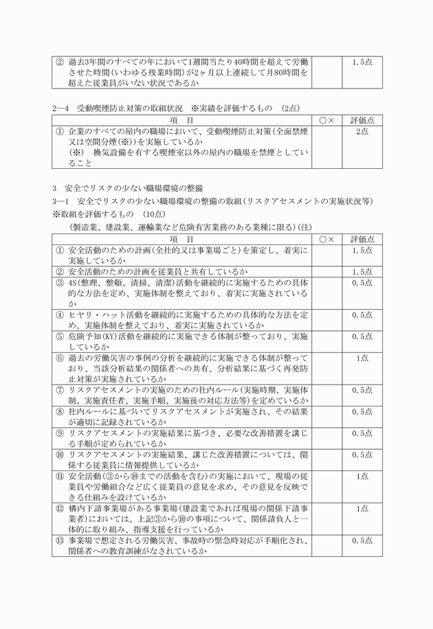 ②過去2年間に「安全衛生優良企業認定取消基準」に該当することが確認され、認定が取り消されたことがないこと ※認定を受けたことのある企業が対象 |